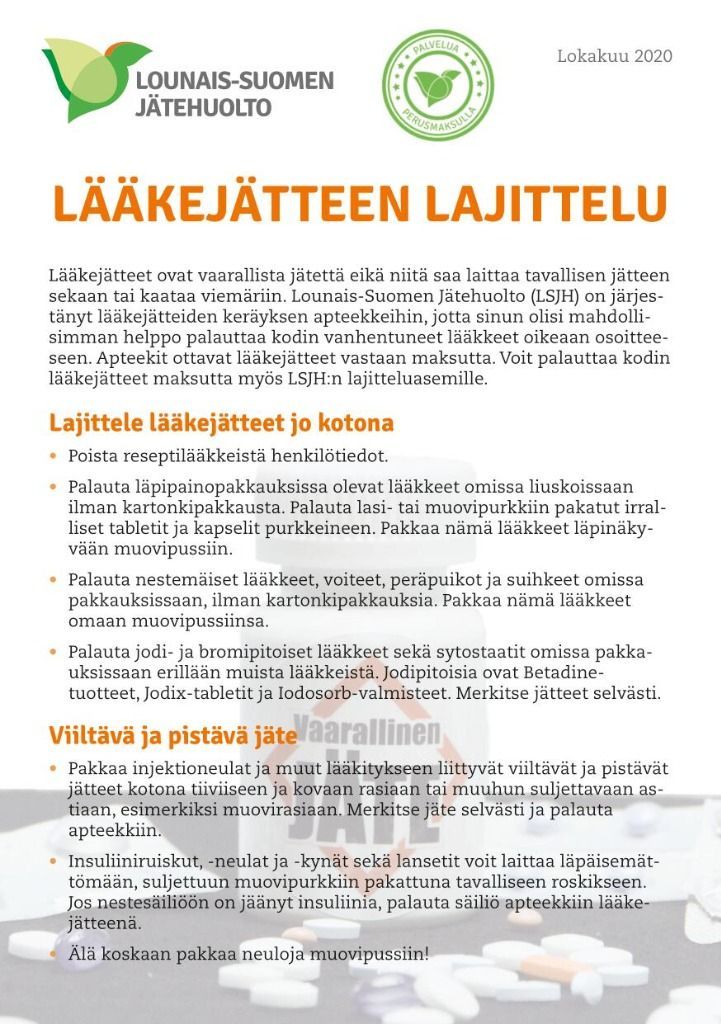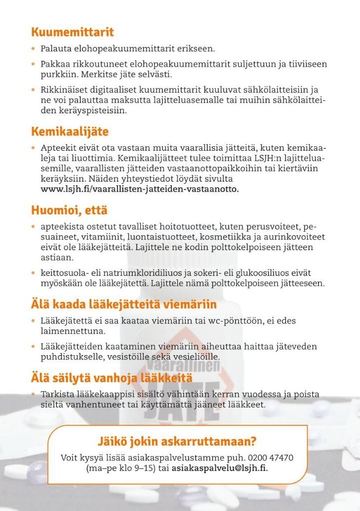 Apteekissamme löytyy oven vierestä lääkejätelaatikko, johon voit palauttaa suurimman osan lääkejätteestä itse.